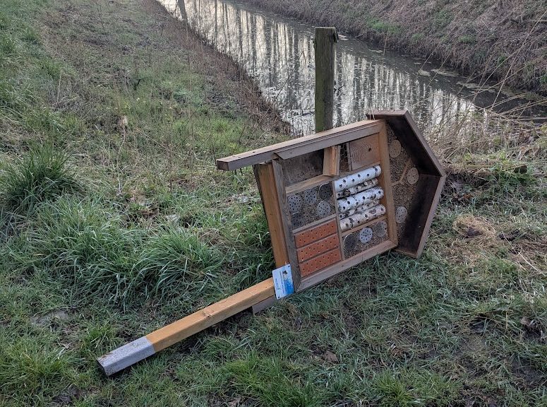 Helaas echter troffen wij recent een omgetrapt/omgetrokken insectenhotel aan die wij nog dezelfde dag weer hebben gerepareerd en rechtgezet. Mocht je iets dergelijks in het bos tegenkomen meld het via de fixi app of stuur een email naar info@dorpsraadmelissant.nl.